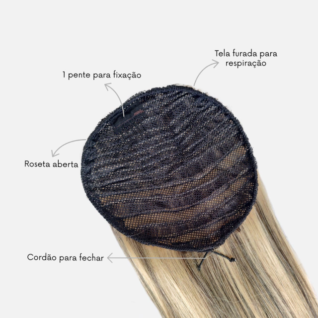 Lavagem Cabelo Humano: Colocar água e shampoo - PH Neutro Sem Sal - em um recipiente bem diluído, mergulhe o Aplique e deixe agir por 5 minutos, manuseando o Aplique de maneira delicada, NÃO esfregar. Enxague o aplique retirando o excesso do produto com água fria e corrente. Repetir o mesmo processo com o condicionador, NÃO torcer. Deixar secar naturalmente.