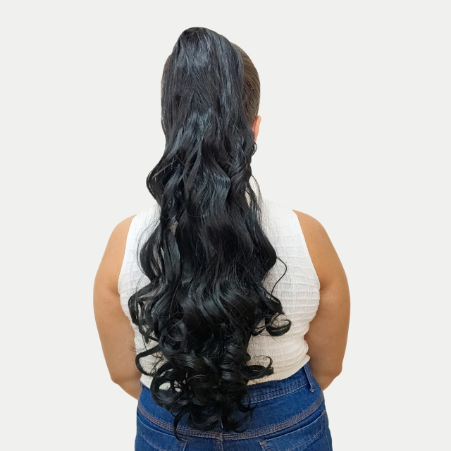 Aplique Rabo de Cavalo com Presilha tipo Piranha e Elástico, produzido em fibra, com 70cm de comprimento, rápido e de prática colocação.Os fios são macios, fáceis de arrumar, com ondas delicados.